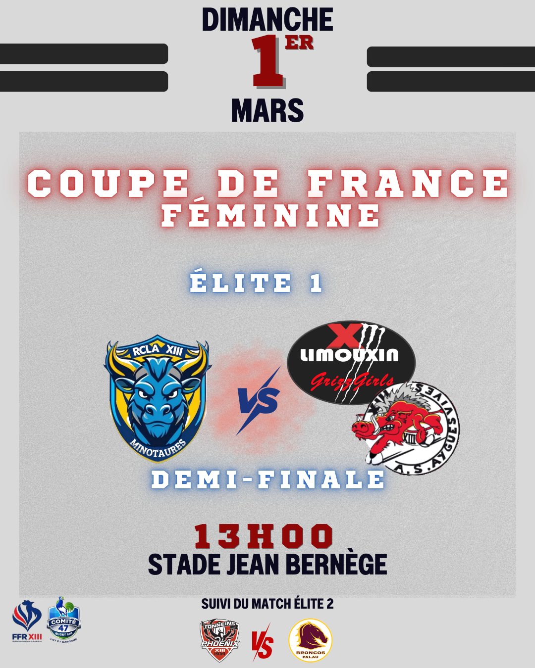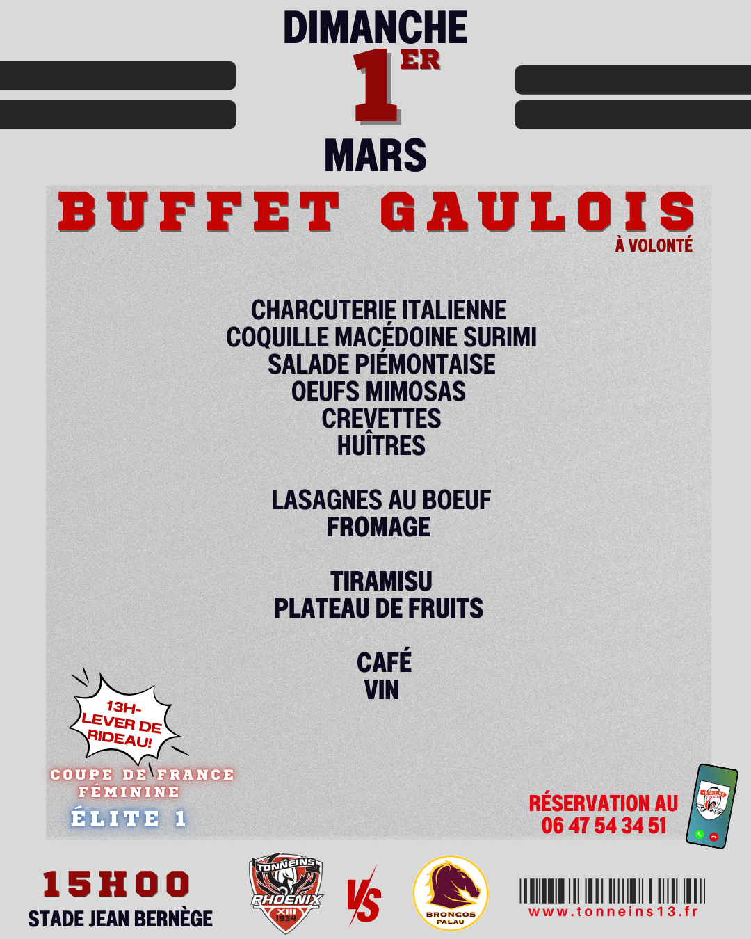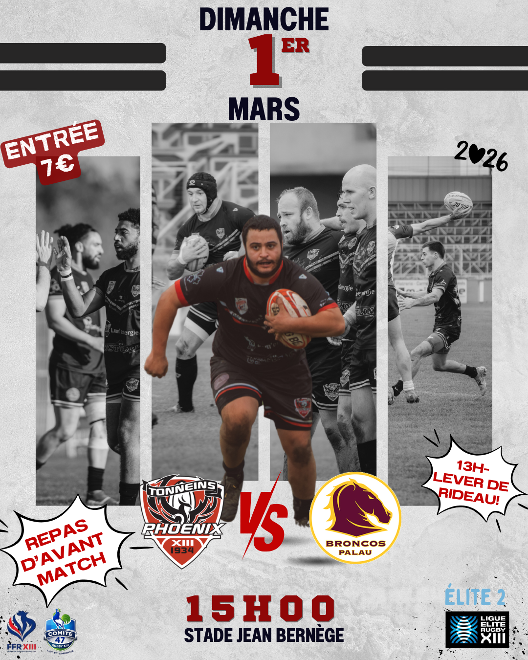 Repas d'avant match et lever de rideau le dimanche 1er mars au stade Jean Bernège.